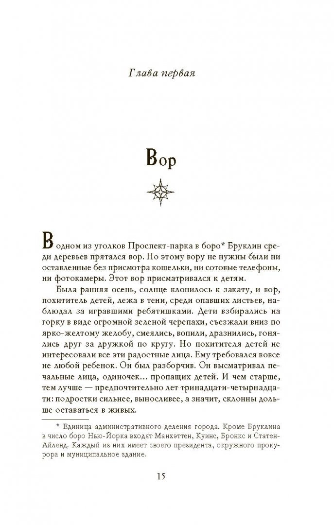 Четырнадцатилетний Ник чудом не погиб в одном из бруклинских парков от рук наркоторговцев, но на помощь ему явился Питер. О, этот Питер! Он быстр, смел, крайне проказлив и, как все мальчишки, любит поиграть, хотя его игры нередко заканчиваются кровопролитием. Его глаза сияют золотом, стоит ему улыбнуться вам, и вы превращаетесь в его друга на всю жизнь. Он приходит к одиноким пропащим детям - сломленным, отчаявшимся, подвергающимся насилию - обещая взять их с собой в тайное место, где их ждут необычайные приключения, где живо волшебство, и где они никогда не станут взрослыми. Конечно, безумные россказни Питера о феях и чудовищах настораживают, но Ник соглашается. В конце концов, в Нью-Йорке для него больше нет безопасного места. Что ему терять? Однако в жизни всегда есть что терять.